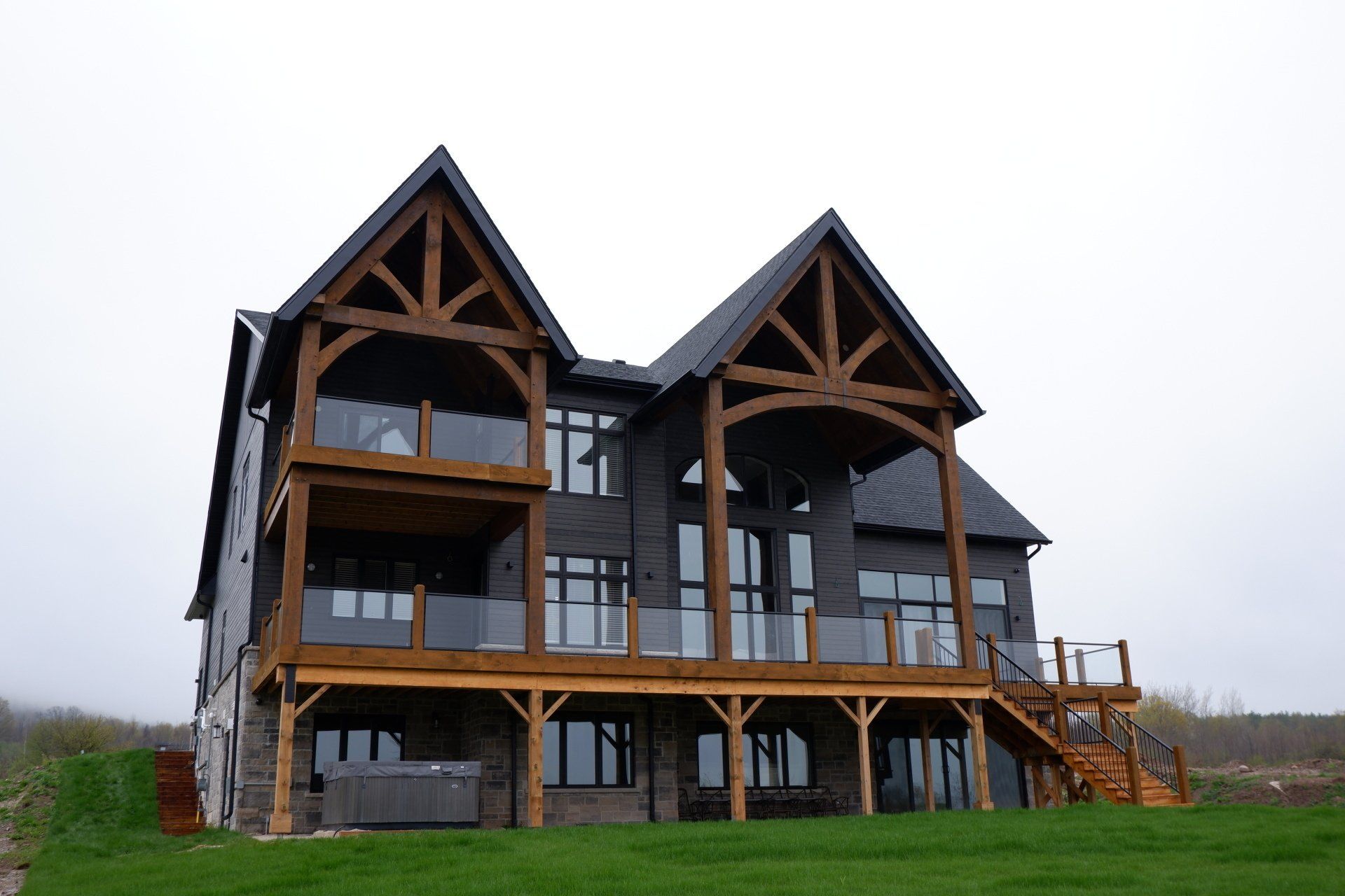 Estate Timbers, we specialize in designing and building custom exterior timber frame structures that complement your home’s architecture while standing strong against Canadian weather.